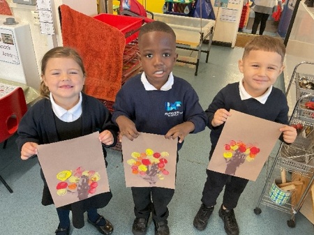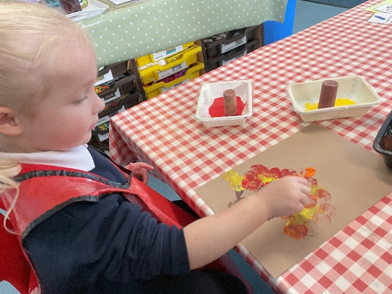 They talked about what happens to the leaves in Autumn and printed out their own Autumnal trees.